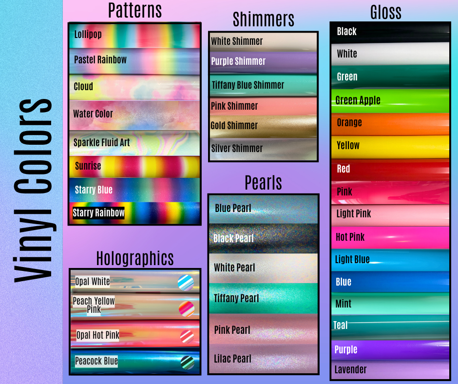 - Select your preferred vinyl color and font from the options provided.