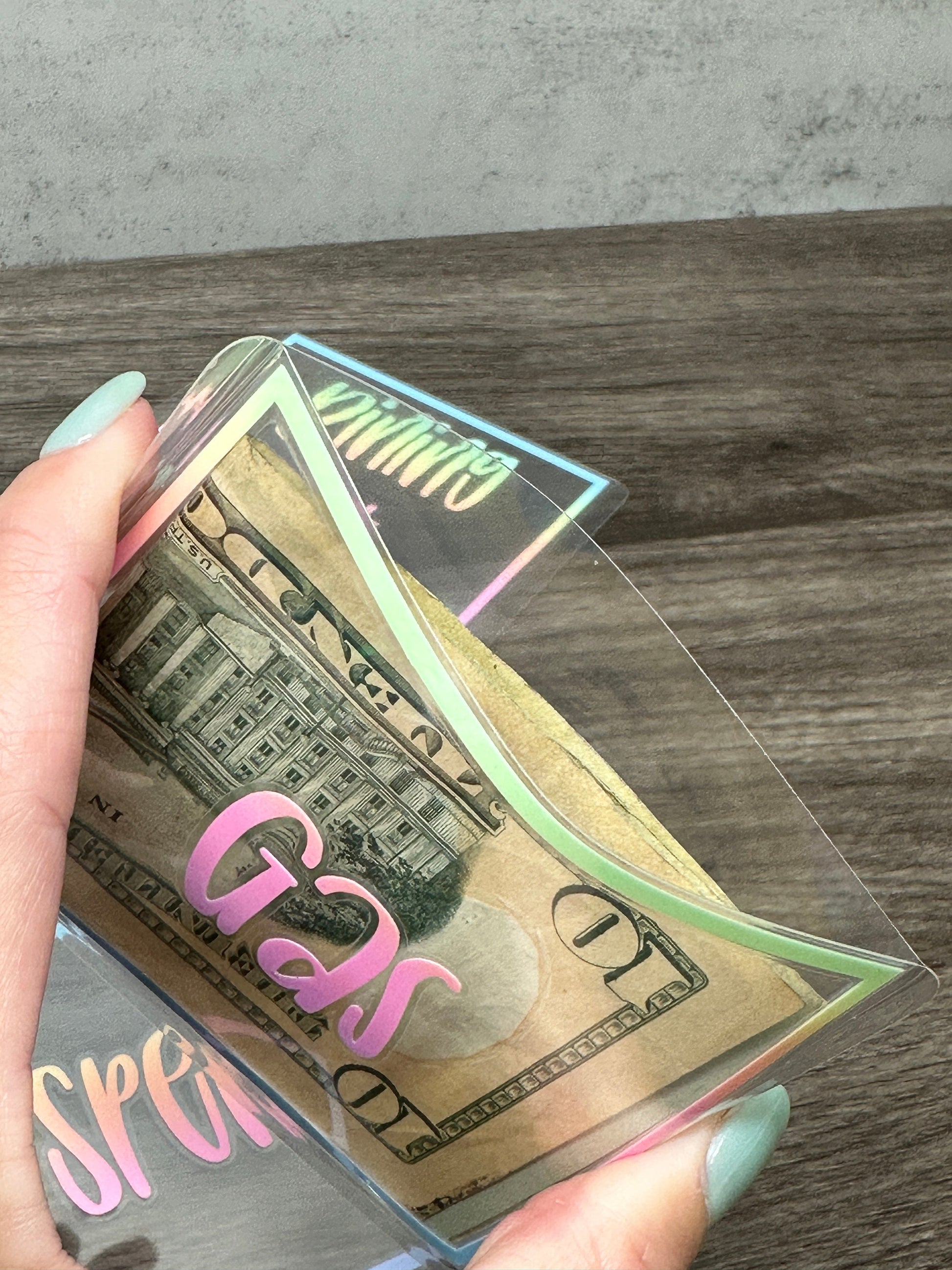 Keep your cash organized with our Mini Clear Cash Envelopes! Each envelope is handmade to order. Available in your choice of vinyl color and font.